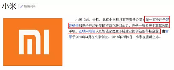 第一步,搜索小米集团,我们看一下百度百科对小米的介绍: