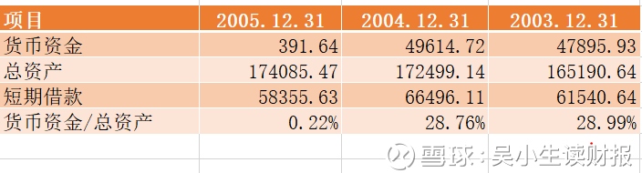 金城股份是一家普通的制造企业,正常来说一家制造企业的货币资金占比不应该非常的高(不明白为什么的请再去读一遍《货币资金(上)》,而在2003-2004年它的货币资金占总资产的比连续2年接近了30%。顿时亮瞎了还没见过什么世面的生叔的。