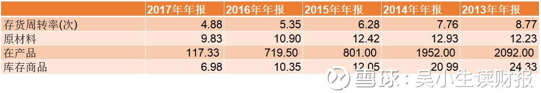 我们再结合上篇当中说过的分别针对“原材料”、“在产品”和“产成品”的存货周转率分析,来举一个反面的例子。