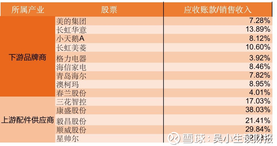 其实可以很明显的看到,这个行业中,下游的品牌商应收账款占比普遍都很低,最高的是长虹占到了13%,其他的几家品牌一般都在10%以内。而上游为这些品牌提高各类原材料、核心零配件、结构件的供应商普遍被压榨的比较厉害,应收账款占比平均都在20%以上,有几家超过了30%。