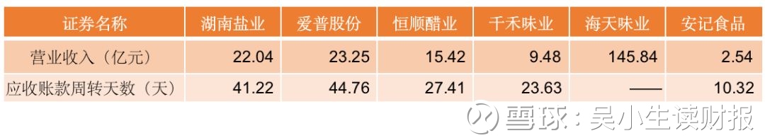 这是调味品行业,在几家公司的对比数据当中,我们会发现海天味业这家公司营业收入高达145个亿,但它应收账款周转天数这一栏是“-”,那是因为这家企业比茅台还要强势,经营十几年来,不仅没有任何应收账款,同时也没有任何的应收票据。可以说在这个行业里拿着望远镜都看不到对手,其他同类企业想要威胁到它估计100年都是不可能的。