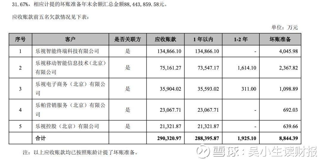 更可怕的是,2016年乐视网应收账款的前五大客户几乎都是它的关联公司,光是这五家客户的应收账款就已经高达了29亿元。