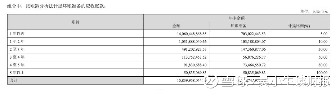 比如这家企业从赊销款产生的那个时点一直到资产负债表日(每年的12月31号),这个时间段在1年以内的应收账款,一共有140多亿元。