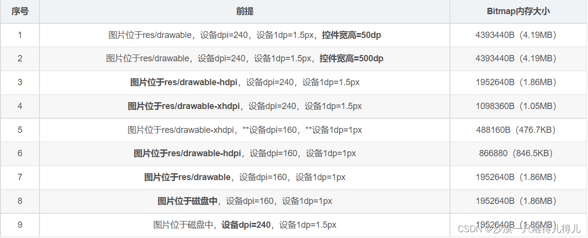同个 app,在不同 dpi 设备中,同个界面的相同图片所占的内存大小有可能不一样。