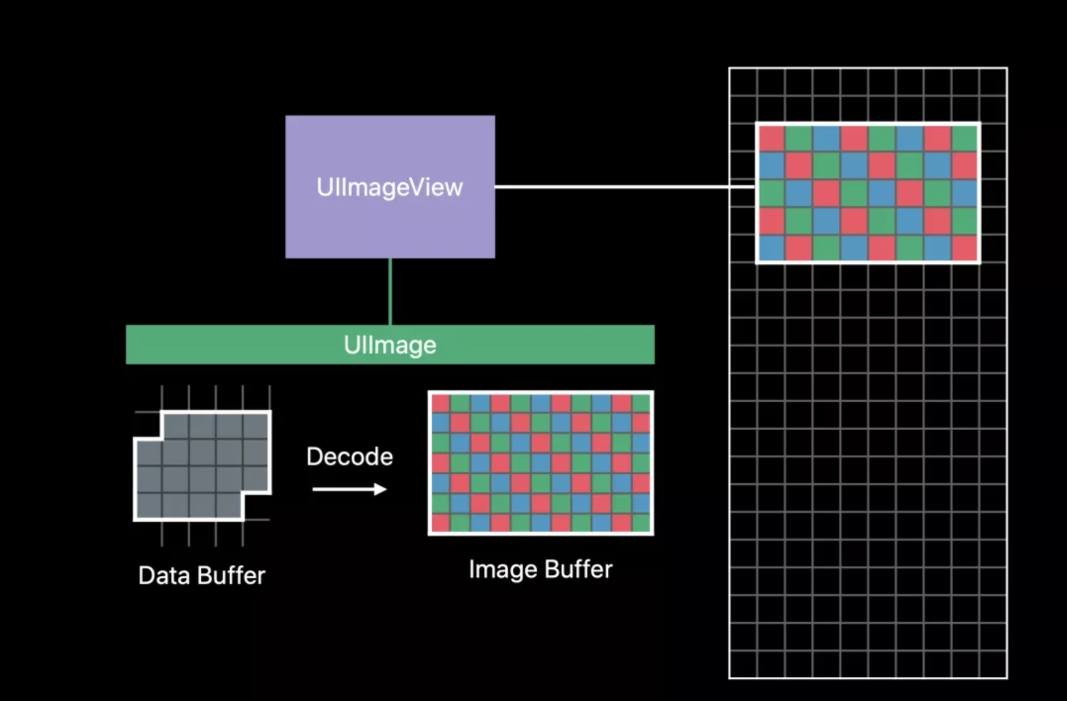 图片其实是由很多个像素点组成的,每个像素点描述了该点的颜色信息。这样的数据是可以被直接渲染在屏幕上的,称之为 Image Buffer。