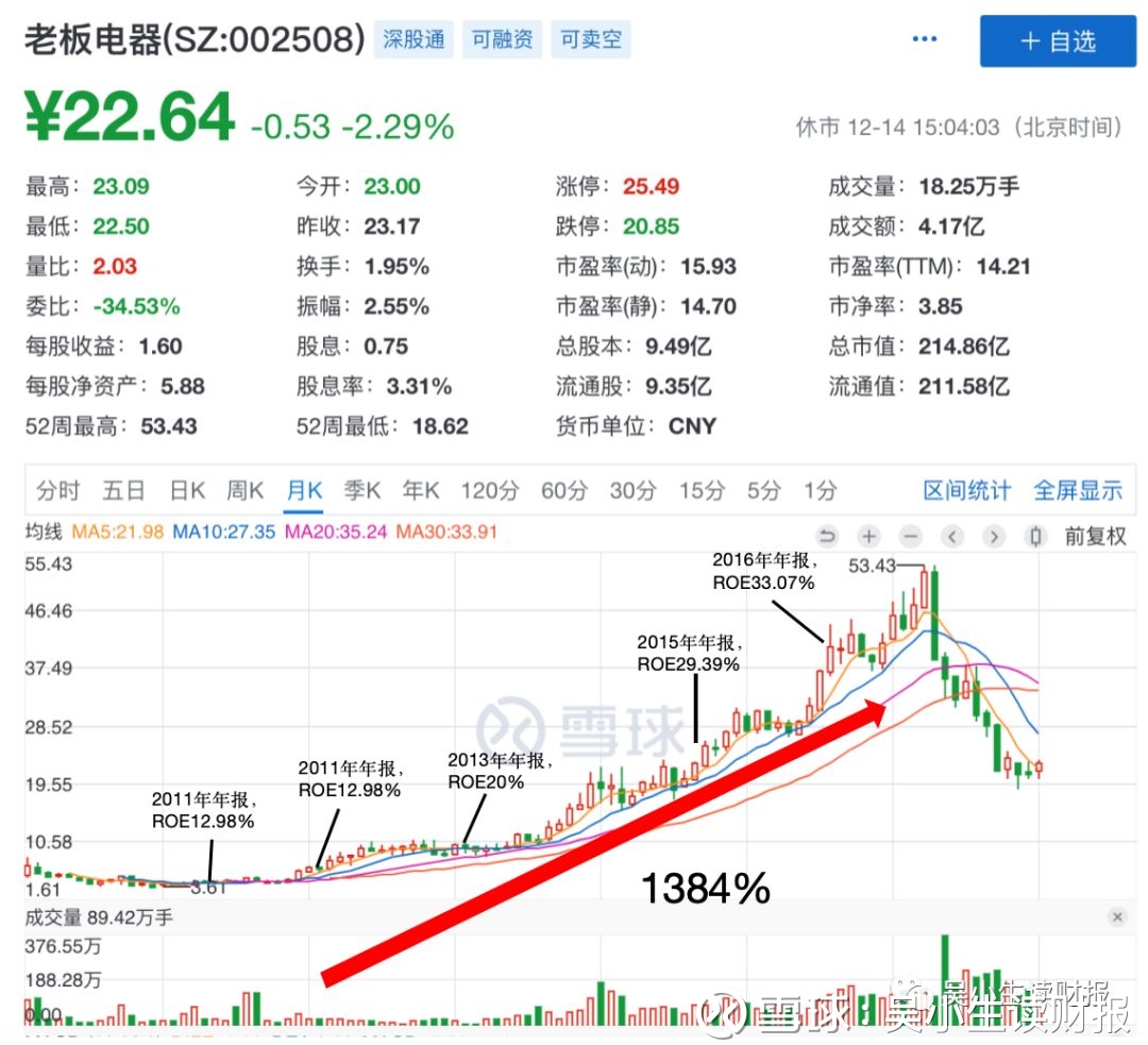 事实上,一个公司roe从低到高的过程往往是其股价涨幅最大的部分。