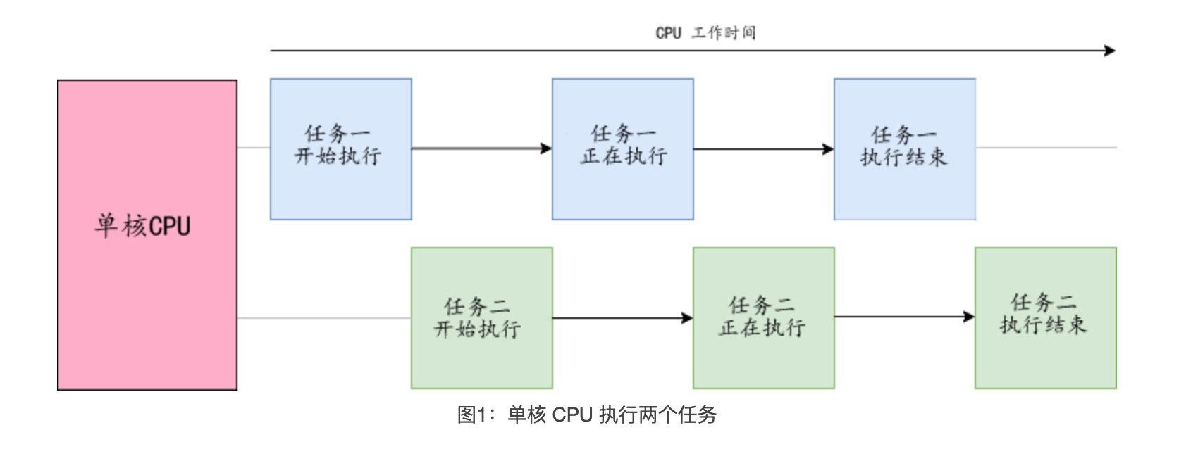 并发: 所谓并发,就是通过一种算法将 CPU 资源合理地分配给多个任务,当一个任务执行 I/O 操作时,CPU 可以转而执行其它的任务,等到 I/O 操作完成以后,或者新的任务遇到 I/O 操作时,CPU 再回到原来的任务继续执行。