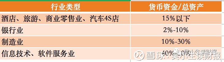 首先是像酒店、旅游、商业零售业、汽车4S店这些行业,由于每天能够收取大量现金,企业经营活动只要正常周转,就不会存在资金紧张的问题,因此会将资金投入到外部,增加资金的使用效率,货币资金占总资产比例相对较低,一般在15%以下。